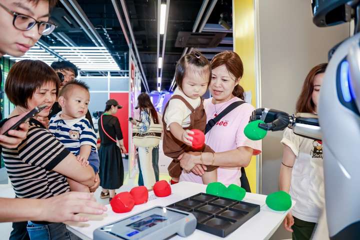 體驗中心為消費者精心設計了八大主題空間,打造 “步步有驚喜、處處有互動” 的游覽體驗:炫技舞臺讓游客近距離感受機器人運動極限,拳擊擂臺、棋牌對弈、冰壺競技等互動項目,讓消費者在趣味體驗中感知具身智能的精準推理和控制能力;時空走廊串聯具身智能技術發展脈絡,搭配裸眼 3D、VR 眼鏡與動捕服等設備,打造 “虛實交融” 的科技體驗;文創零售區則推出機器人主題周邊,讓游客將 “科技記憶” 帶回家。此外,二層可容納 100 人的機器人劇場,每日上演 “科技 + 藝術” 融合演出,40 分鐘的沉浸式體驗讓 C 端消費者全方位感受人機互動的樂趣。